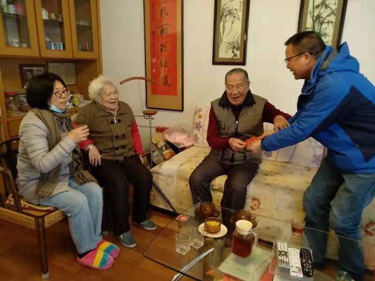 领导、工会委员、退休支委及退协委员分五组前往病困、独居老同志的家中或养老院进行元旦、春节慰问,这是慰问郭廷惠老师。