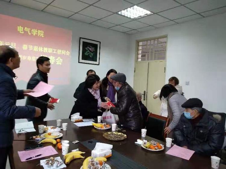 党委书记占永琼,院长许志红,副院长王武亲临慰问会现场,院工会主席邹阳及陈少斌等工会全体委员全部到场,退休支委和退协委员也全部参加。慰问会由退休党支部书记李光辉主持。于2021年1月18日下午在至诚电气会议室举行。