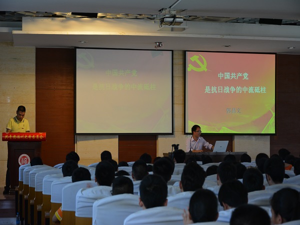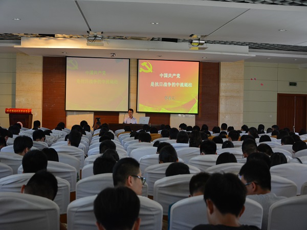 郭昌文教授为2015级新生做“中国共产党是抗日战争的中流砥柱”主题讲座。讲座由2015级新生辅导员沈庆斌老师主持。
