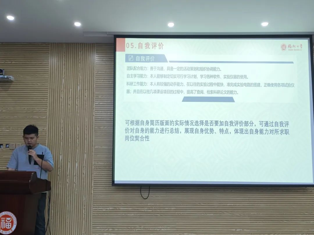 在紧张而有序的比赛现场,参赛选手们凭借精心设计的PPT,以充满激情的演讲方式,向我们展示了他们在简历制作上的独到见解。他们从简历的外观设计入手,详细阐述了如何通过色彩搭配和版面布局来吸引招聘者的注意力,还深入探讨了简历内容的编排,分享了如何突出个人优势、工作经验和技能,以及如何避免常见错误,尽显电气学子的自信和专业素养。