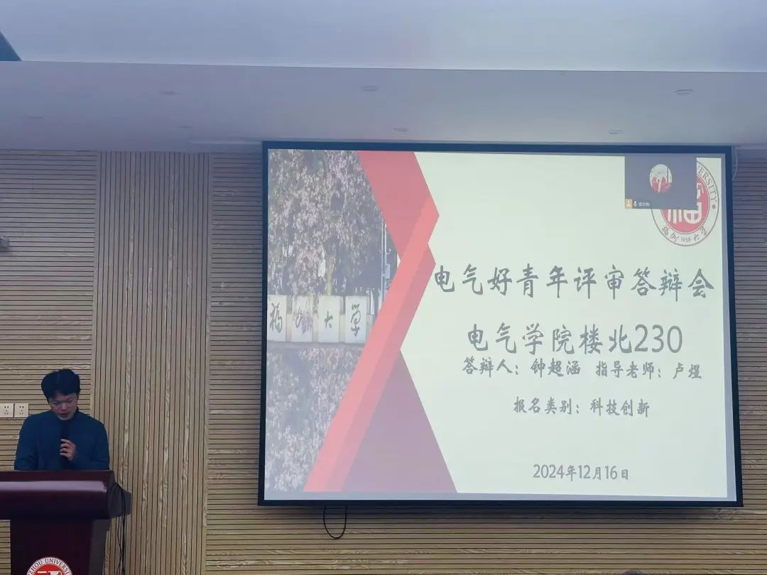 在“电气好青年”答辩中,九位同学从道德榜样、爱校守纪、诚笃好学、社会实践、志愿服务等多方面对自身情况与个人规划进行了阐述:他们带头示范、主动奉献,全心全意为同学们服务;他们勤奋学习、敏于求知,助力集体共同进步;他们积极探索、勇于实践,在创新中求发展,在务实中谋进步,参与打造具有电气特色的学术实践活动。
