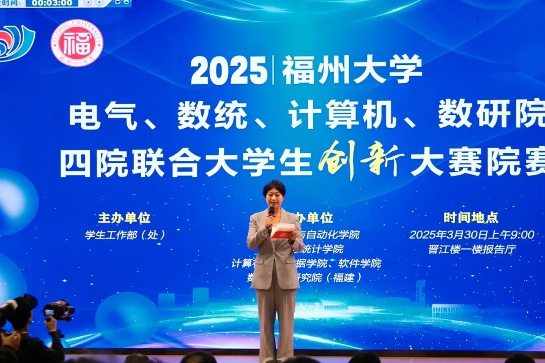 为贯彻落实党的二十大精神,深入学习习近平总书记给中国“互联网+”大学生创新创业大赛“青年红色筑梦之旅”大学生回信精神,促进跨学科创新和产学研融合,践行以赛育人、以赛促用、以赛为媒的指导思想,进一步激发学生创新创业热情,切实提升广大学生的创新精神、创业意识和创新创业能力,福州大学电气、数统、计算机、数研院四院于2025年3月30日上午在福州大学旗山校区晋江楼一楼报告厅举办四院联合大学生创新大赛院赛。