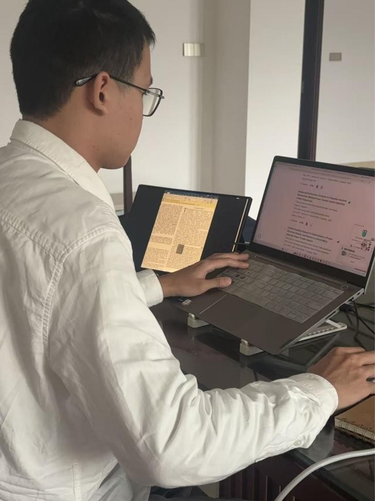 开启研究生生涯后,许威始终以勤奋为笔、刻苦为墨,在学术之路上坚定地追求卓越 。面对难度攀升、内容繁杂的课程体系,他如同一位严苛的工匠,精雕细琢每一处知识要点。课堂上,他全神贯注汲取知识养分;课后,他一头扎进研究工作,查阅海量文献,反复推导论证。这份不懈的努力与坚持,让他取得了学年成绩专业排名4/24的优异表现,为后续的科研之路打下了坚实的基础 。