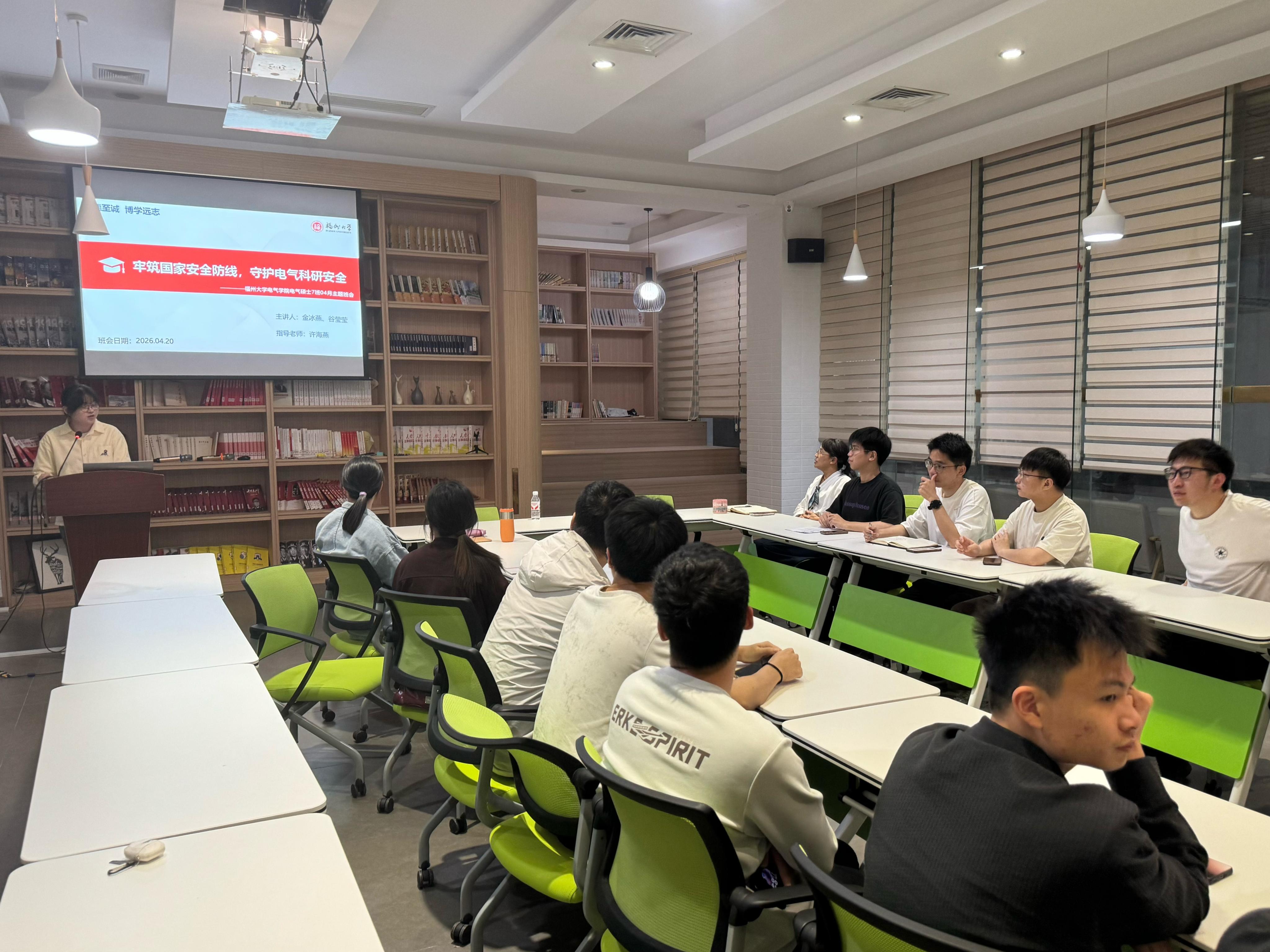 班会伊始,班长金冰燕围绕总体国家安全观展开核心宣讲,明确国家安全涵盖人民安全、经济安全、政治安全、科技安全等多重维度。随后由团支部书记谷莹莹同学分享电气工程科研信息安全及如何做国家安全的守护者。作为能源领域的科研学子,大家深刻认识到:电气实验数据、电力系统方案、核心技术参数等科研成果,直接关系国家能源安全与科技安全,必须严守数据保密规范,杜绝信息泄露风险,以严谨态度守护科研阵地安全。