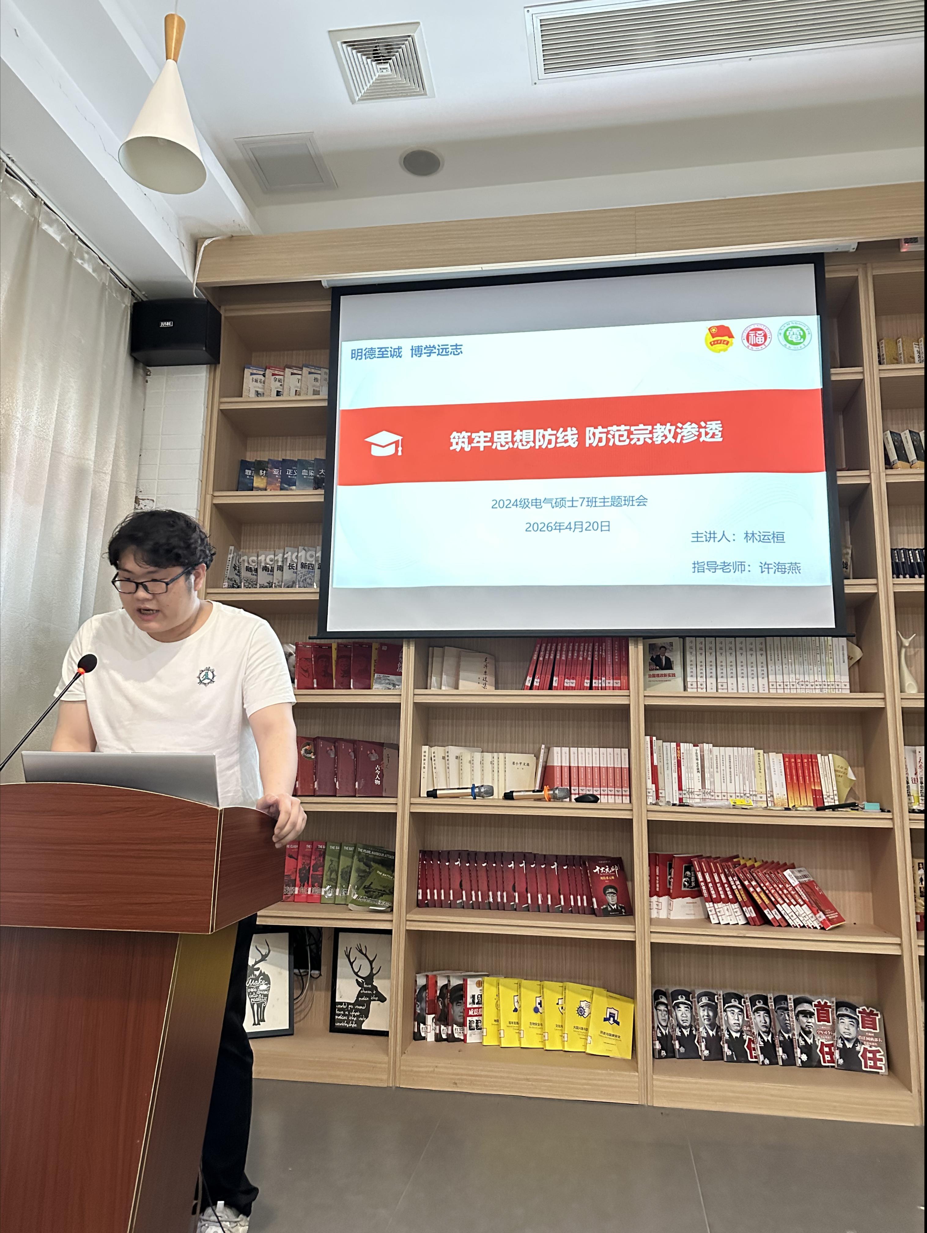 作为“1+N”主题教育内容之一,班级依托学习资料开展大学生宗教政策法规专题教育,引导同学认清宗教渗透危害,筑牢思想安全防线。班会上,林运桓同学带领学习党的宗教工作基本方针及相关法规,明确宗教信仰自由政策与禁止利用宗教危害社会、干扰教育等规定。结合典型案例,同学们辨析了非法传教、网络宗教活动、假借公益及学术名义传教等渗透形式,认识到要从日常细节防范宗教渗透。