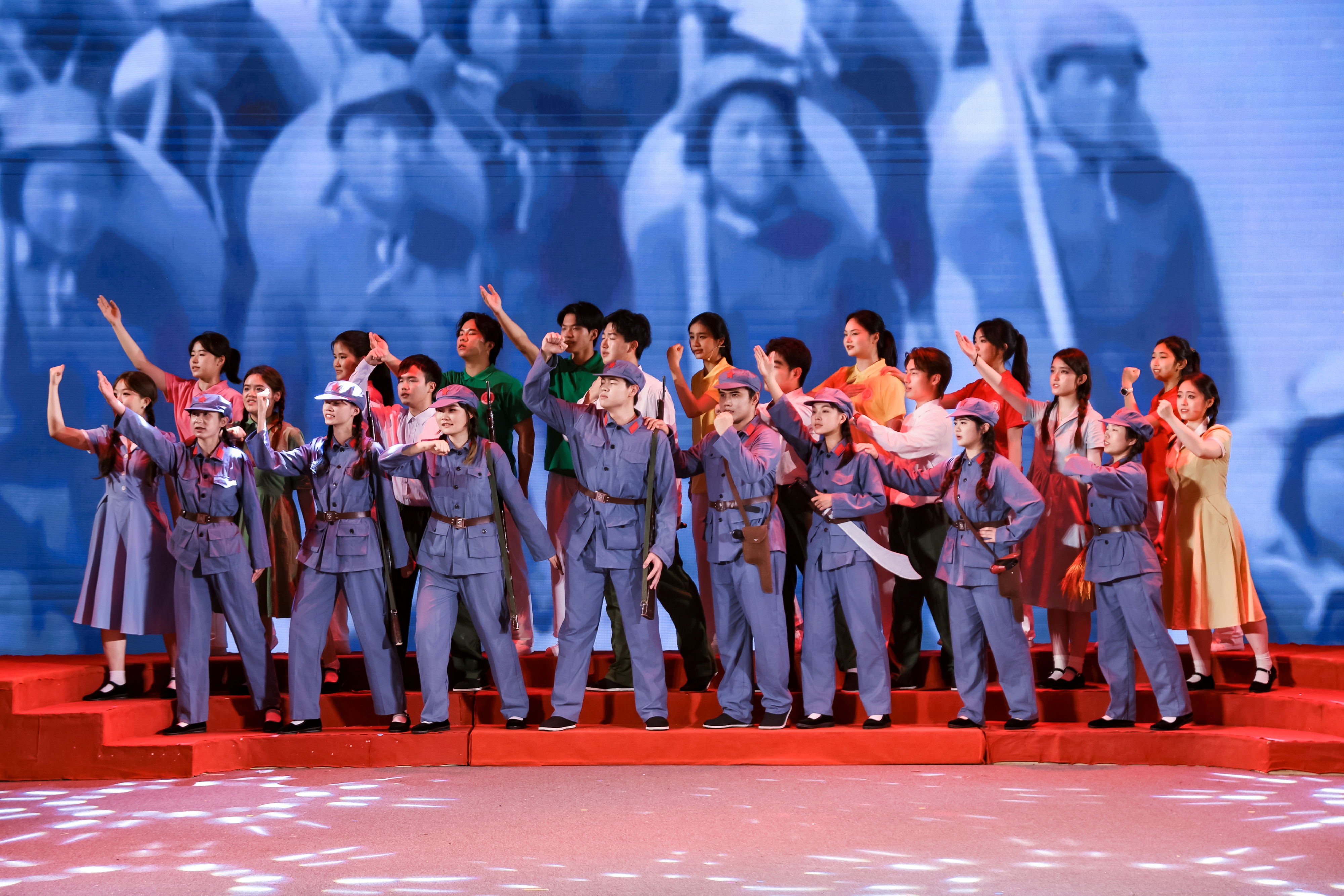 红歌新唱,守正创新。《寻声万疆》突破传统串唱形式,打造完整的戏剧性舞台叙事。节目以三院青年为主角,循着百年奋斗征程展开寻声之旅,将多首红色经典曲目巧妙串联,依次展现民族觉醒、建设岁月、改革发展等时代篇章,最终汇聚成“强国有我”的时代强音。作品既保留红歌的赤诚底蕴与厚重,又融入青年视角创新表达,生动诠释红色基因代代相传,充分彰显三院学子传承红色血脉、奋进新时代的青春风貌。