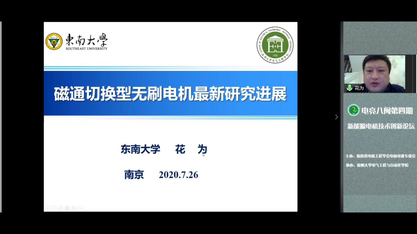 2020年7月26日,由福建省电机工程学会牵头,我院电机电器专委会组织的“电亮八闽主题科技论坛”第四期“新能源电机技术创新论坛”在中国知网直播平台顺利召开。论坛邀请了华中科技大学曲荣海教授、东南大学花为教授和宁德时代电机科技有限公司卢友文总经理做了主题报告。