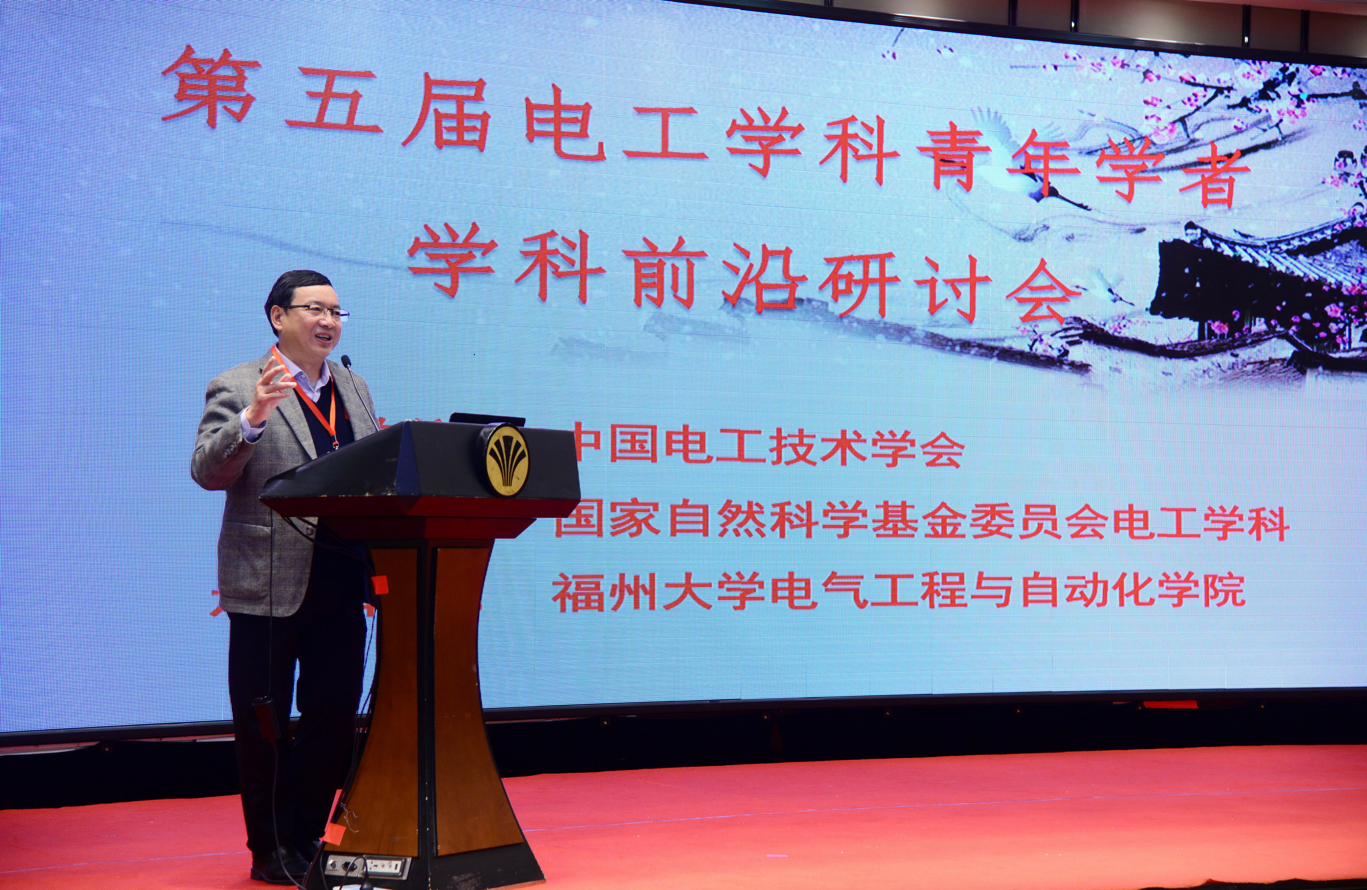 本届研讨会大会环节由国家自然科学基金委员会电工学科丁立健教授主持 ,福州大学副校长黄志刚、中国电工技术学会副理事长兼秘书长裴相精分别致欢迎辞。中国电力科学研究院周孝信院士作了题为“我国新一代电力系统的发展前景”的特邀报告,报告重点介绍了我国能源领域当前的热点和难点问题,指出了电力系统今后面临的重要的机遇和挑战。清华大学曾嵘教授作了题为“科研选题的思考与探索”的特邀报告,曾教授结合自身的科研经历,围绕青年学者科研选题的重要性、如何开展科研工作、如何正确面对科研中遇到的问题进行了详细介绍。