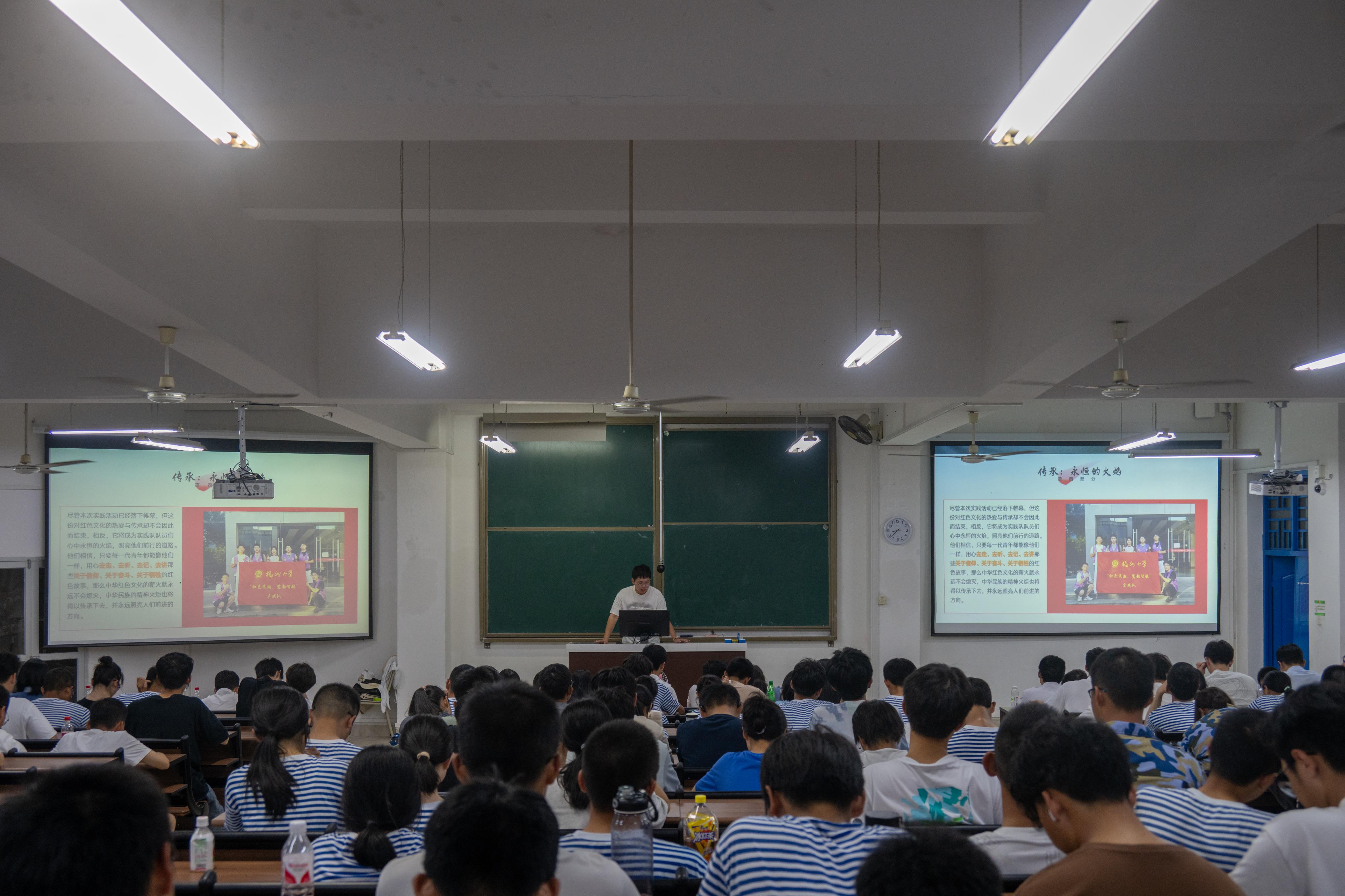 “读万卷书,行万里路”,在知识的海洋中,实践是推动认知之舟前行的风帆;在实践的田野上,知识是照亮前行之路的明灯。当代的青年学子正如翱翔于天际的鹰隼,投身于社会实践的广袤天地。通过实践,他们将更好地理解自我、实现理想、服务社会。为见证成长的脚步,传承实践的智慧,感受实践的力量,9月19日晚上,我院在福州大学铜盘校区b209隆重举办“实践归来话成长”暨暑期“三下乡”社会实践成果汇报会。院党委副书记钟钛申、院团委书记李金土、院团委副书记梁艳华和辅导员许海燕、唐龙翰、何慧、黄莹莹、赖先民、李剑峰等出席活动。
