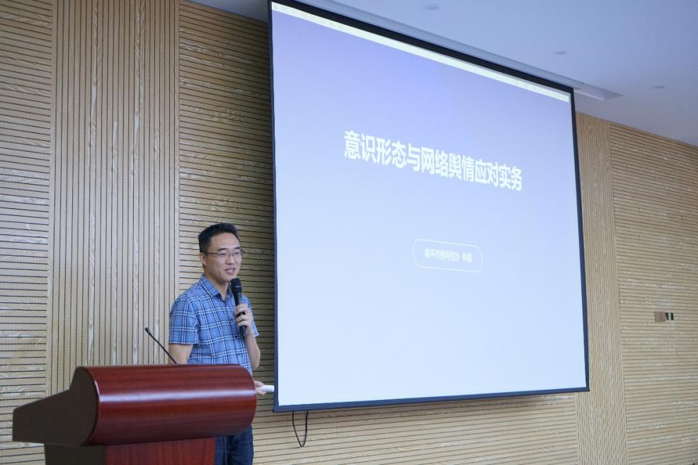 楼北230召开《意识形态与网络舆情应对实务》专题讲座,南平市委网信办林檬副主任为与会领导、师生进行了分享。他解释了意识形态的构成,指出了意识形态工作的重要性。同时,林主任强调,网络舆情是舆论的集中爆发,直接作用于意识形态,必须防范其对意识形态堤坝的冲击,并由此提出了应对网络舆情的三个原则和三个手段。最后,他提出了抓舆情收集、抓分析研判、统筹协调舆情、加强队伍建设、做好应急演练等建议。