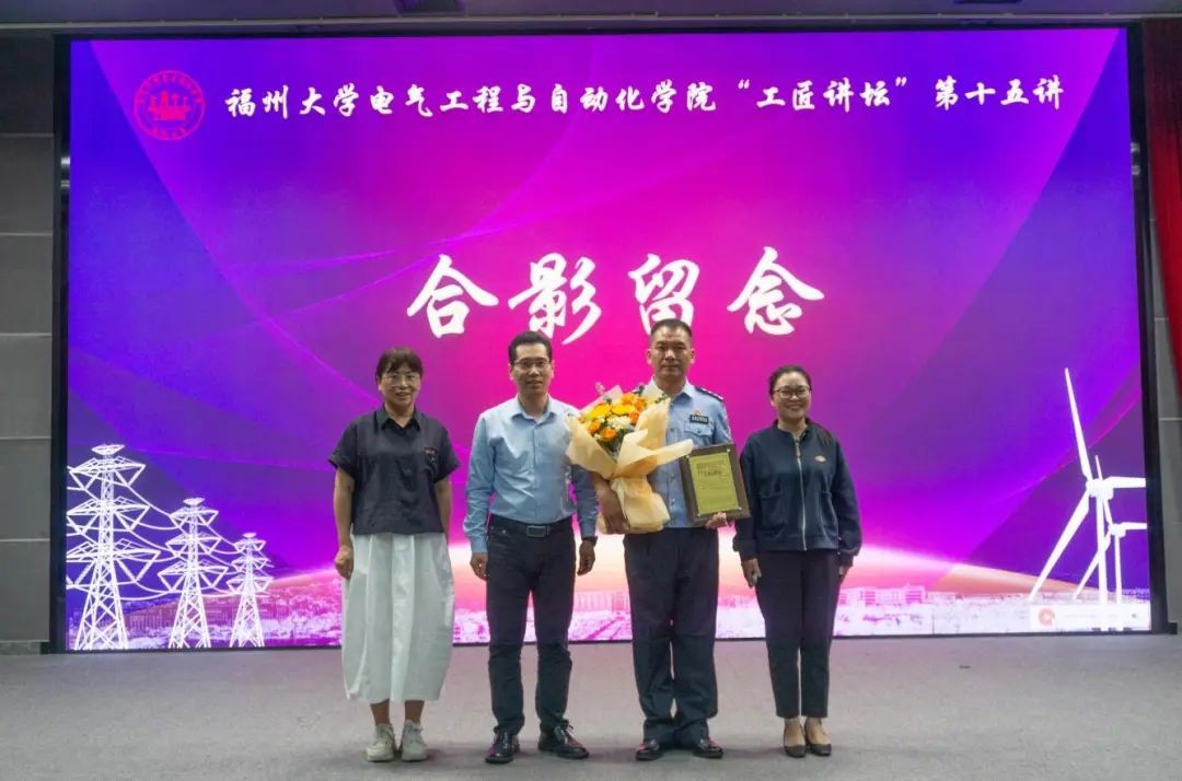 党委副书记杜领军老师为何士涛教导员颁发嘉宾证书,学生代表为何士涛教导员献花,何士涛教导员也为“工匠讲坛”留下珍贵的墨宝。