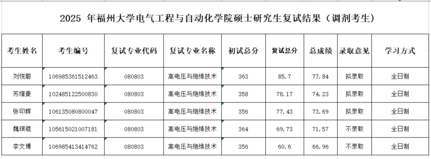 2025年硕士研究生招生复试调剂方案》的内容要求,现将我院2025年硕士研究生招生复试结果(调剂考生)予以公示,公示期为4月12日-4月14日。