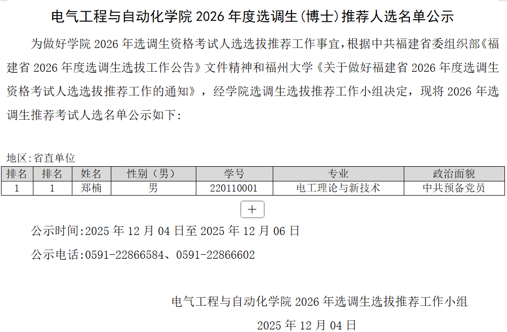 十三水算法 2026年度选调生(博士)推荐人选名单公示
