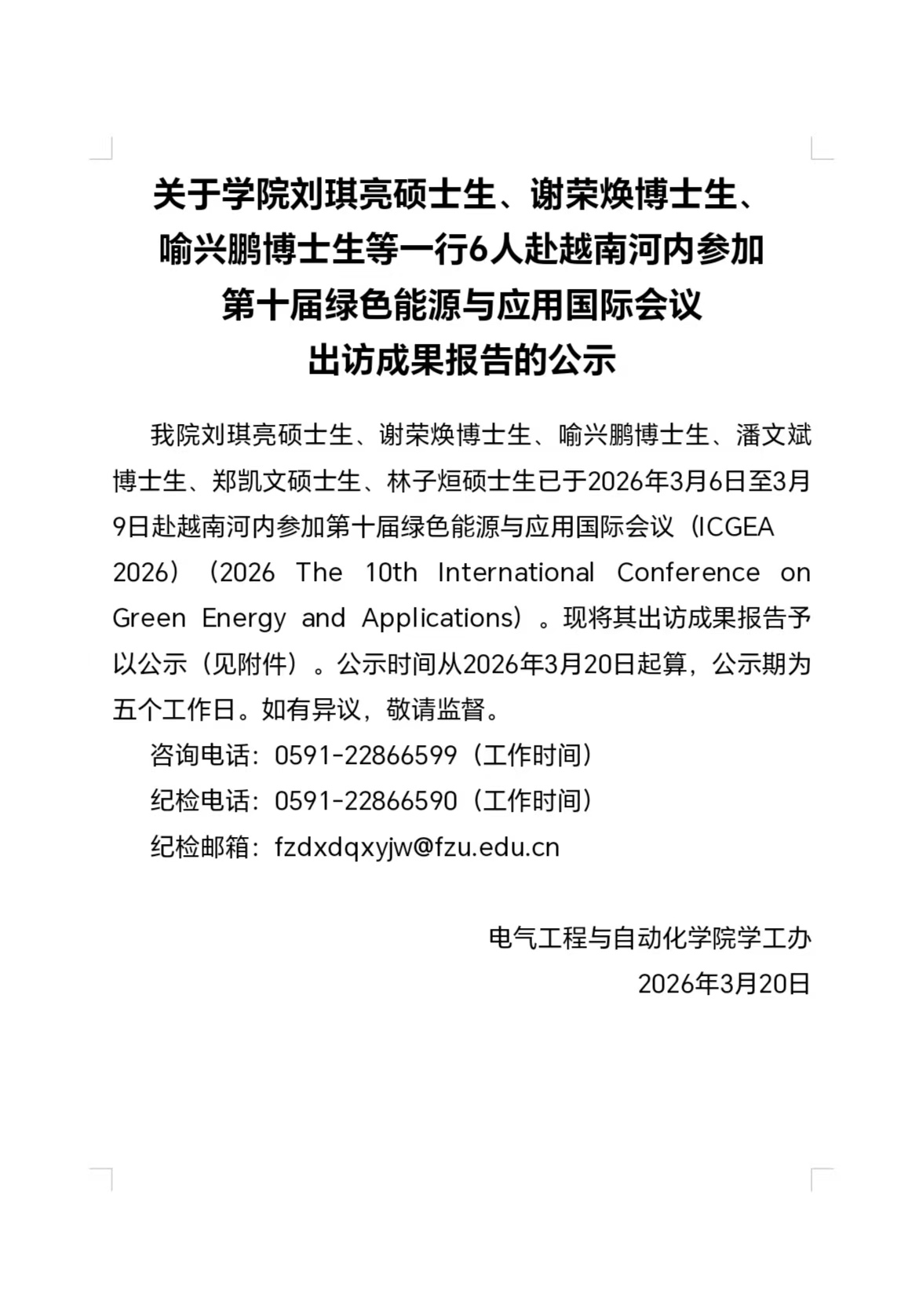 关于十三水算法 刘琪亮硕士生、谢荣焕博士生、喻兴鹏博士生等一行6人赴越南河内参加第十届绿色能源与应用国际会议出访成果报告的公示