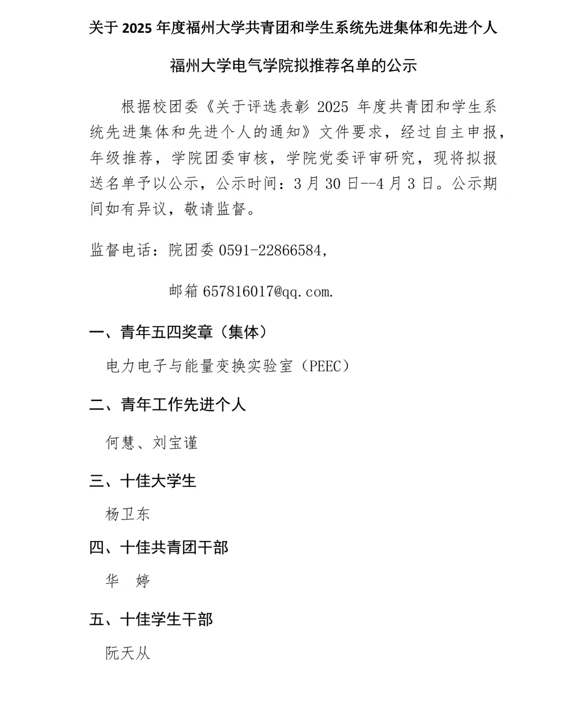 关于2025年度福州大学共青团和学生系统先进集体和先进个人